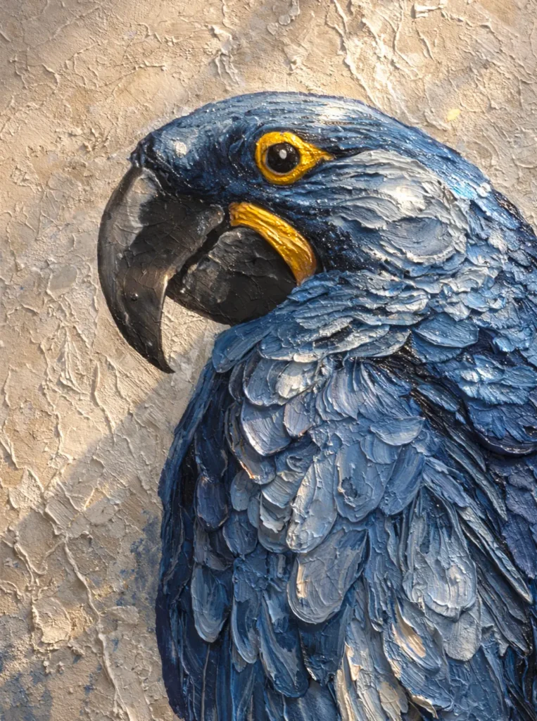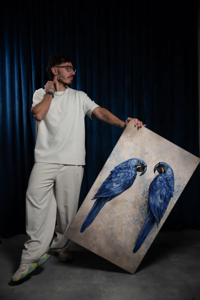 Quel quadro adesso andrà su una parete della villa di Noto. Starà lì, in mezzo a uno dei paesaggi più belli d’Italia, in una casa costruita con cura e con intenzione. E ogni volta che Carmelo lo guarderà, vedrà due anime che si guardano. La sua e quella del primo pappagallo blu che ha amato.